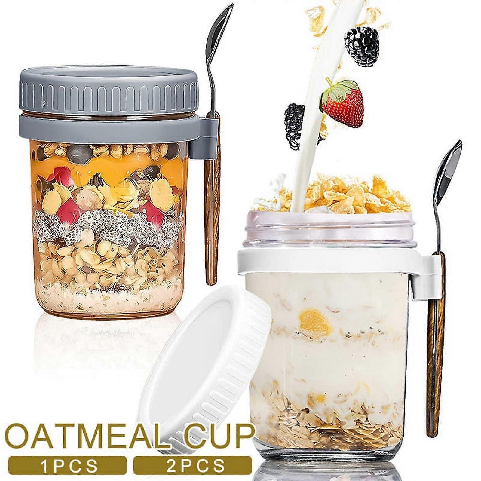 1pcs Breakfast Cup Container Airtight Oatmeal Jar with Cover and Spoon Portable Oatmeal Cup for Salads Cereal Grey