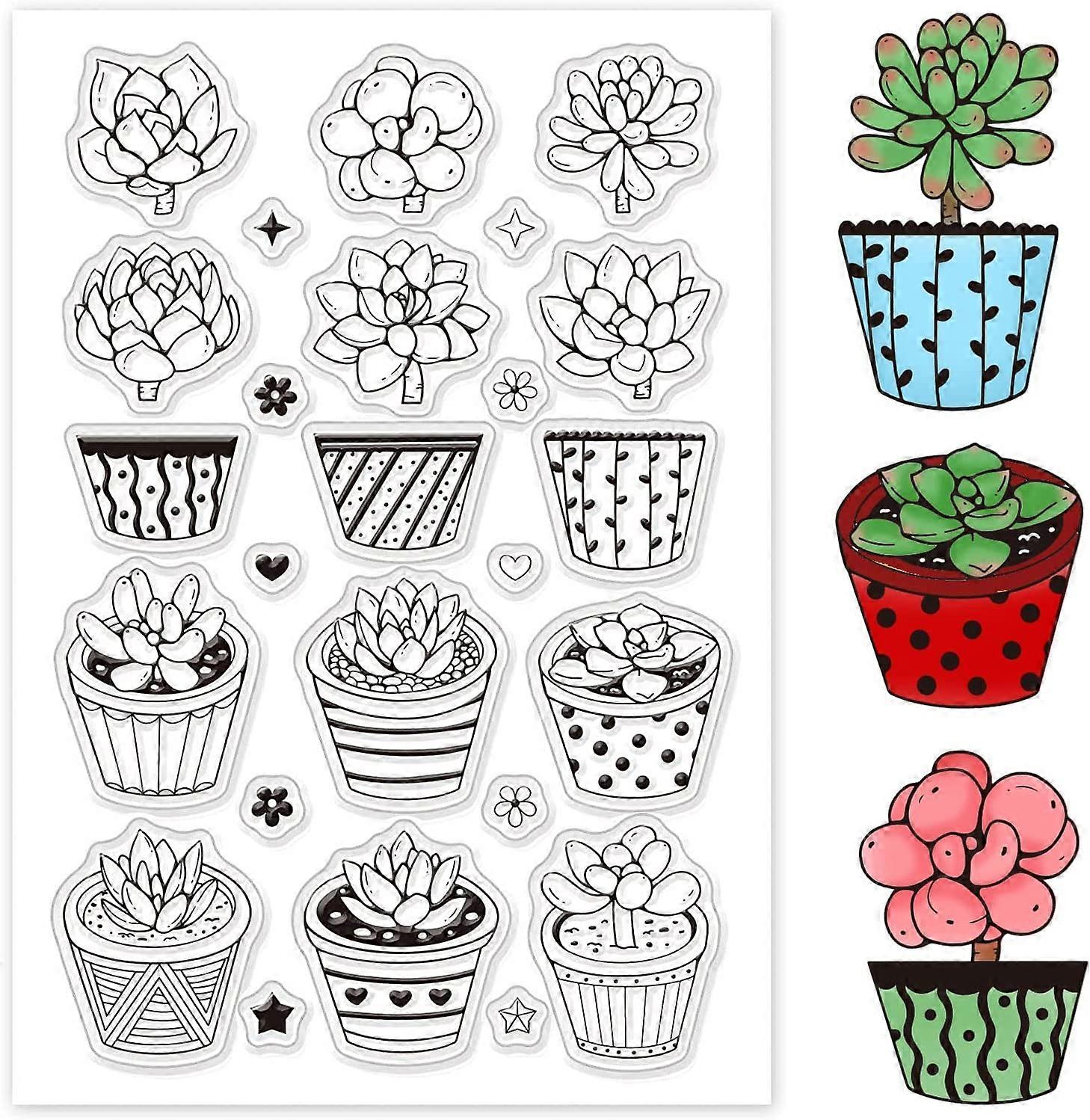 1Sheet Succulent Pots Clear Stamps Transparent Silicone Stamp Seal for Card Making Decoration and DIY Scrapbooking