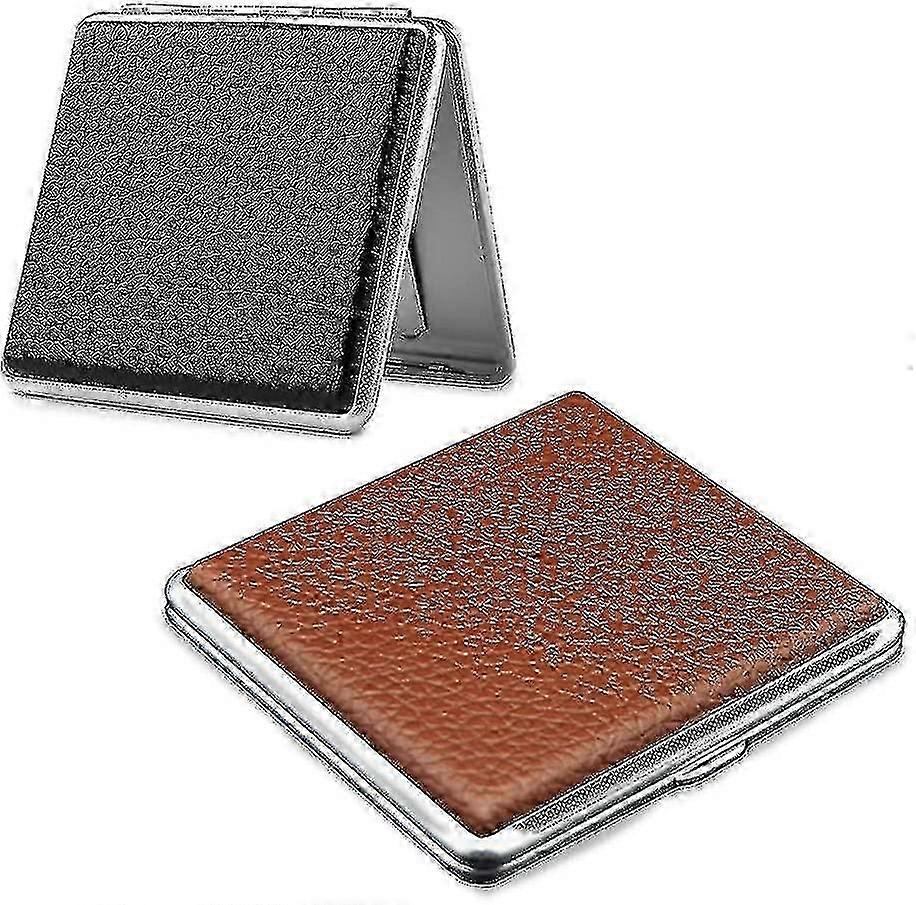 2 X Slim Leather Cigarette Case, Elegant Box Leather Metal Cigarette Case A