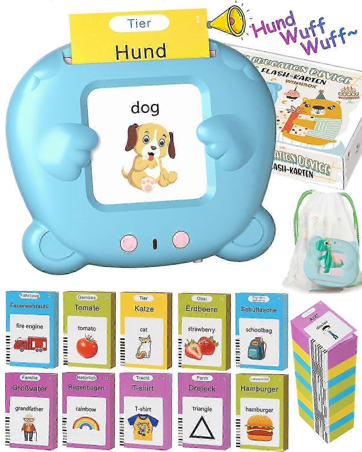 Talking Flashcards German English Learning Toy for Children Age 2-4, Educational Vocabulary Flash Cards, Blue A1-244