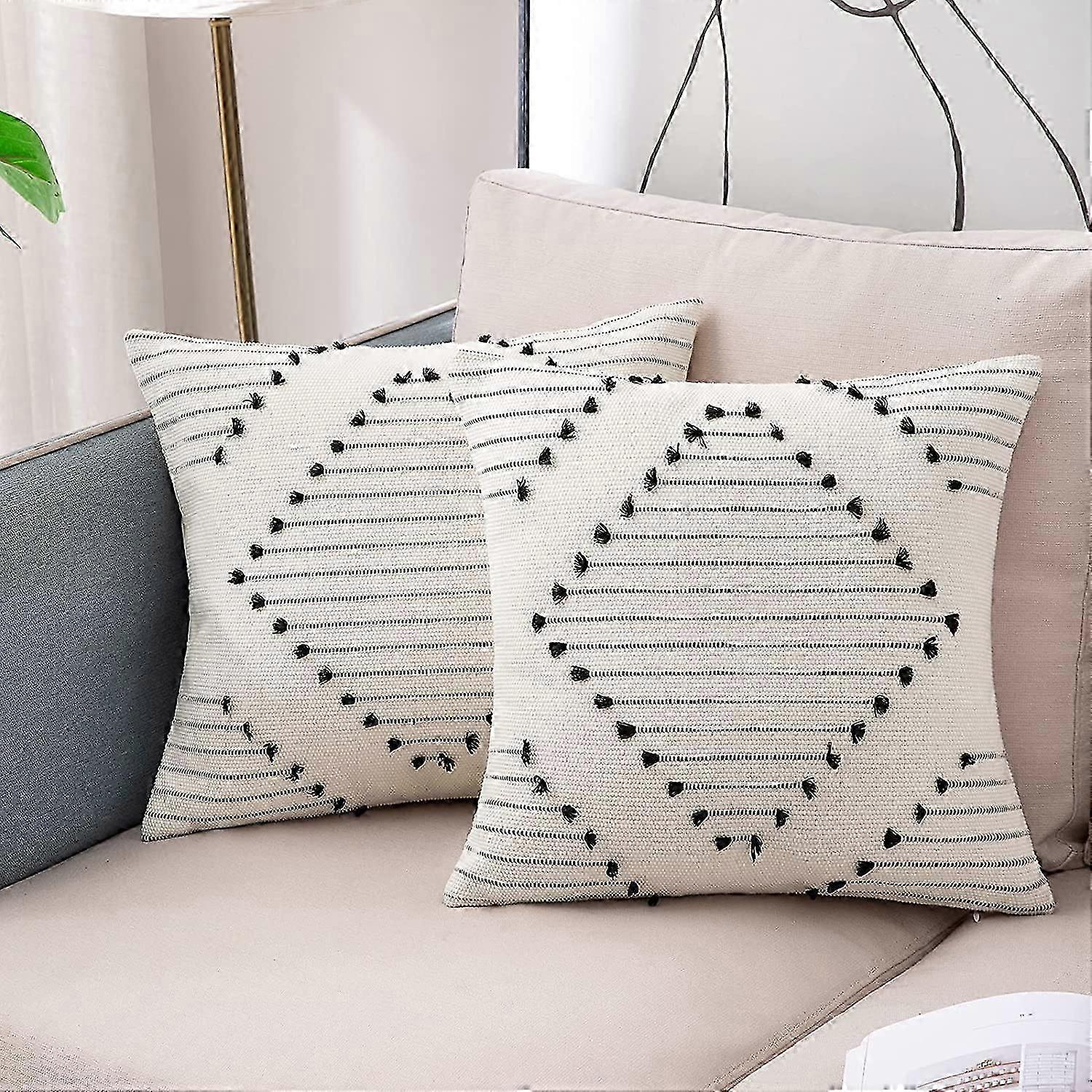 Set of 2 Cushion Covers 45x45cm,Bohemian Decorative Cushion Modern Woven Square,Black and White