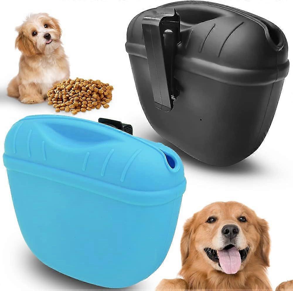 2 silicone dog training bags (black + blue), portable dog food bags silicone pet feeding bags, pet dog training bags with magnetic clips and belt clip