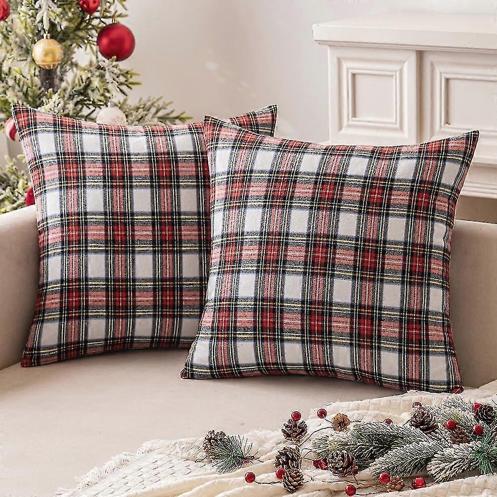 Christmas Set Of 2 Scottish Tartan Plaid Throw Pillow Covers Farmhouse Classic Decorative Square Cushion Cases 18x18 Inch,white Red