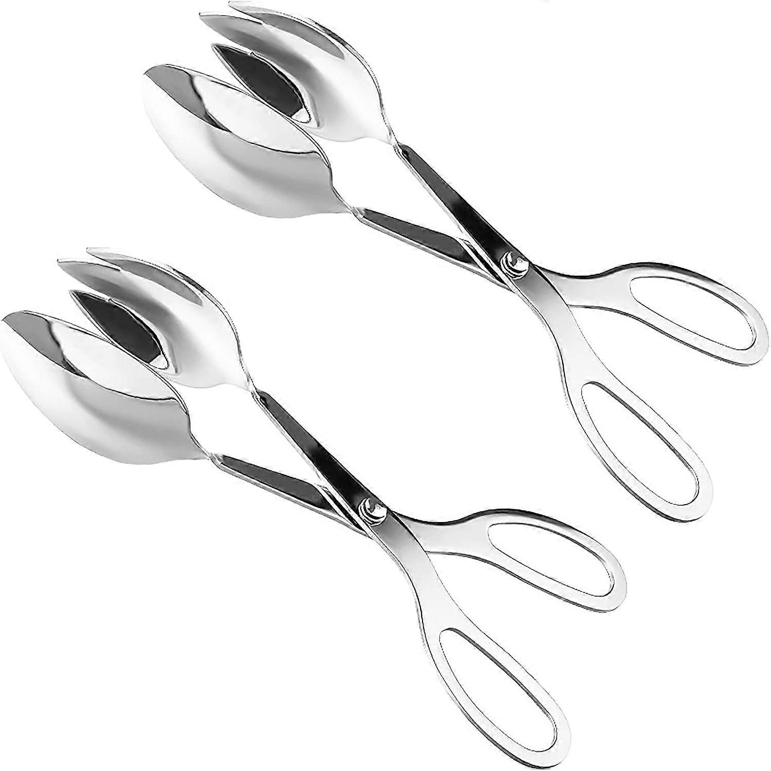 Set of 2 Stainless Steel Kitchen Tongs Salad Tongs Scissors, Food Tongs Serving Utensil Tongs for Bread, Cake, Buffet, Barbecue, Pastry