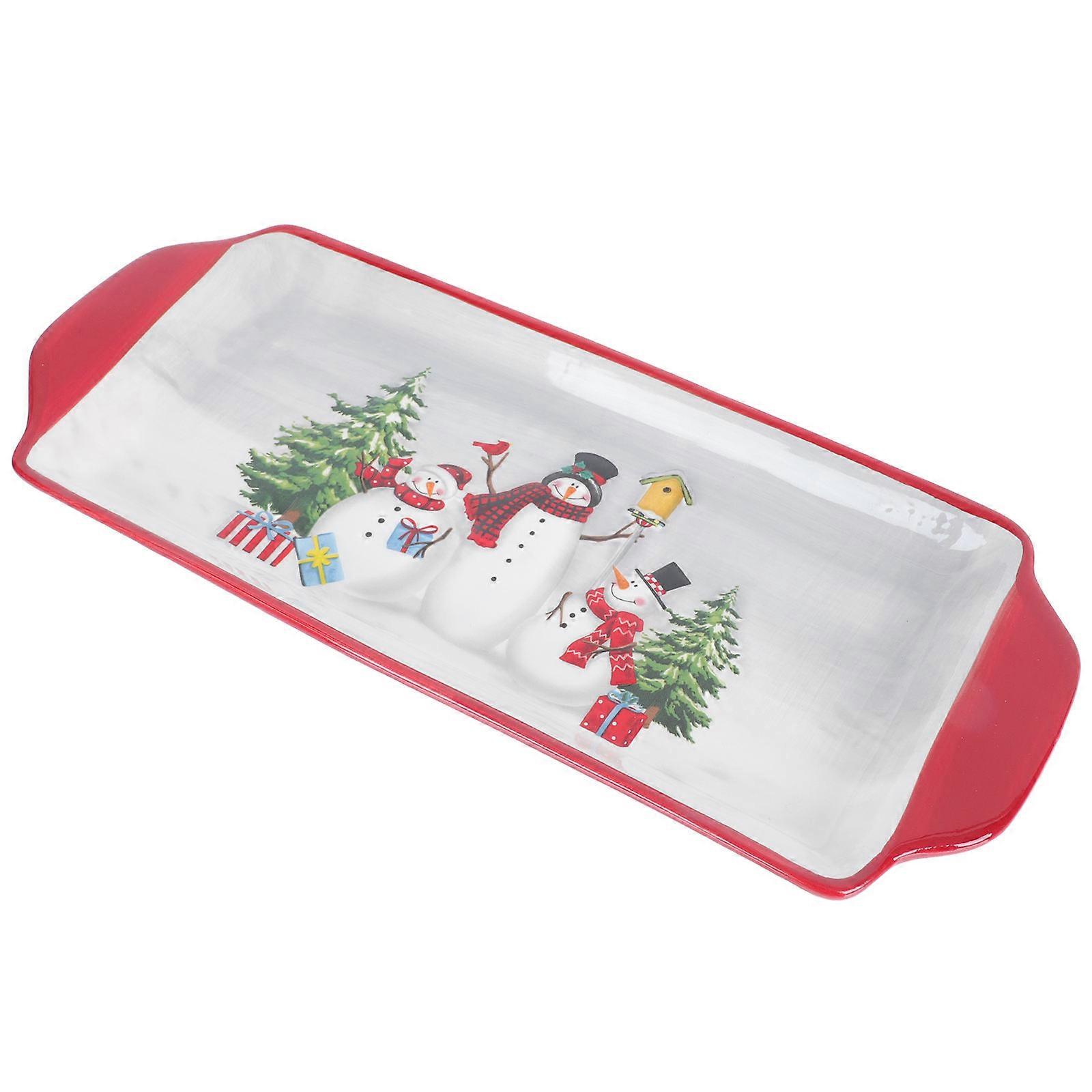 Household Ceramic Tray For Christmas With Two Handles Table Decoration 35x14.5cm 1Pack