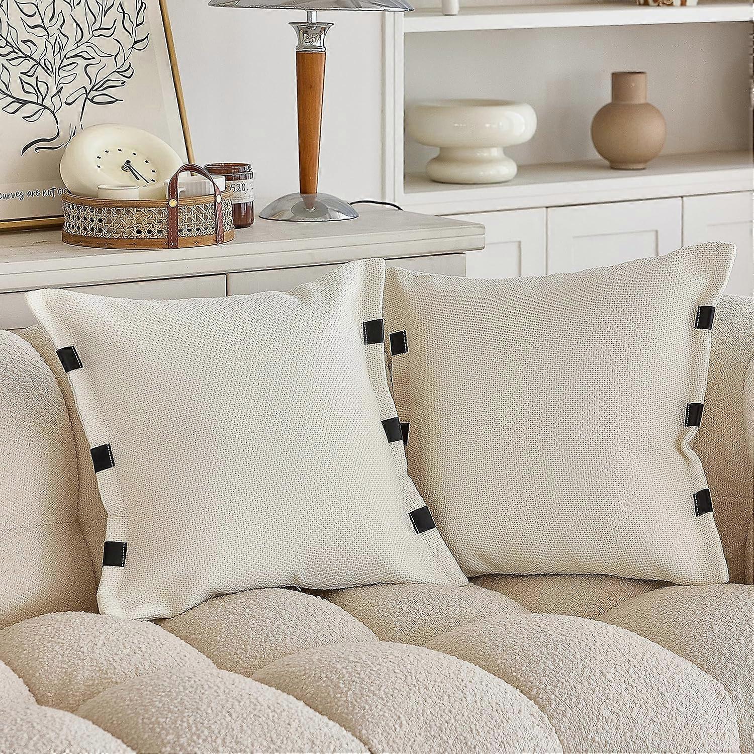 Set of 2 Beige Decorative Throw Pillow Covers 18x18 inch Square Cushion Case for Home Couch Sofa