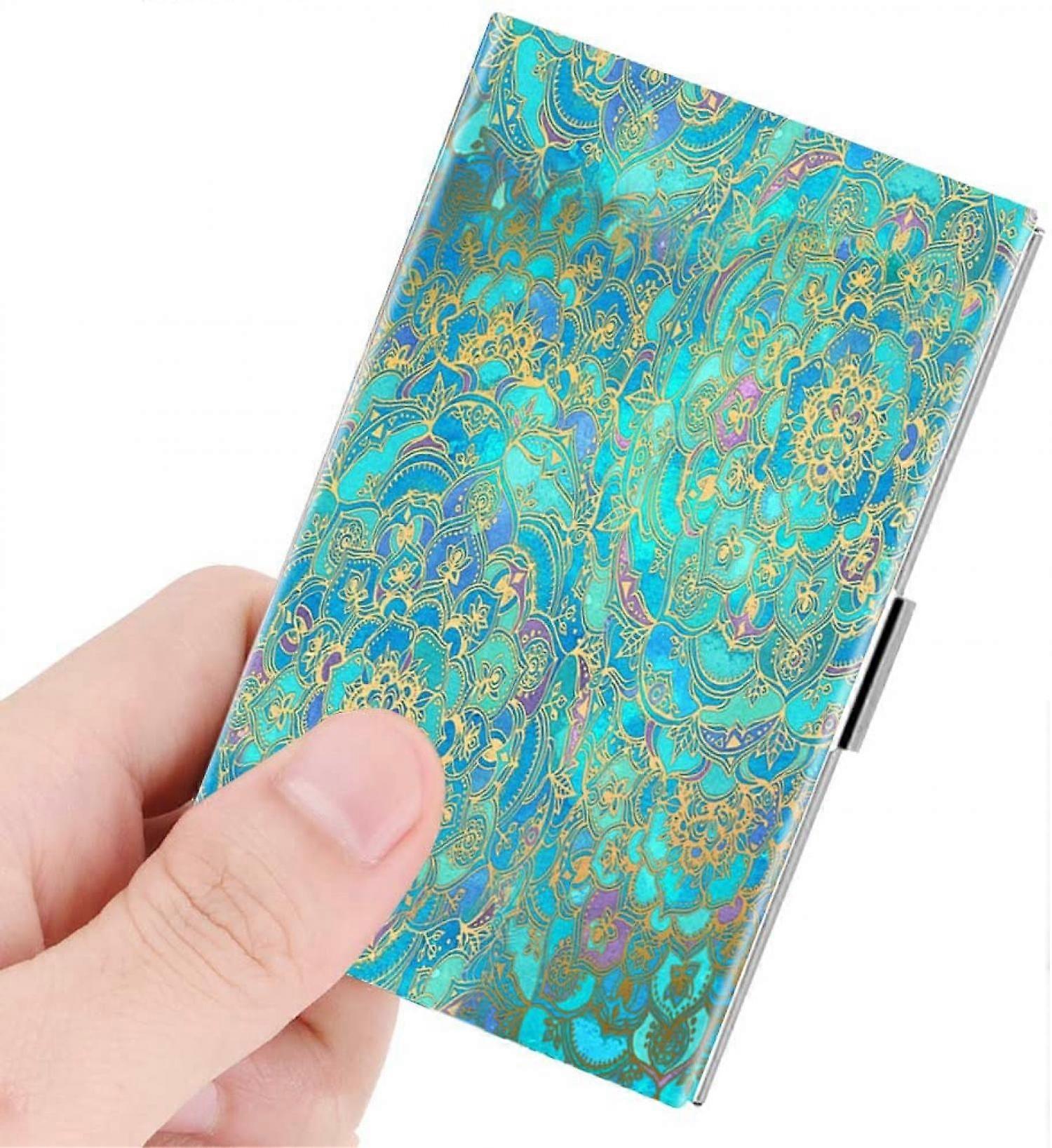 Set of 2 Business Card Holder, Fintie Premium Vegan Leather Coated Stainless Steel Professional Slim Name Card Case Organizer for Men & Women (Sha
