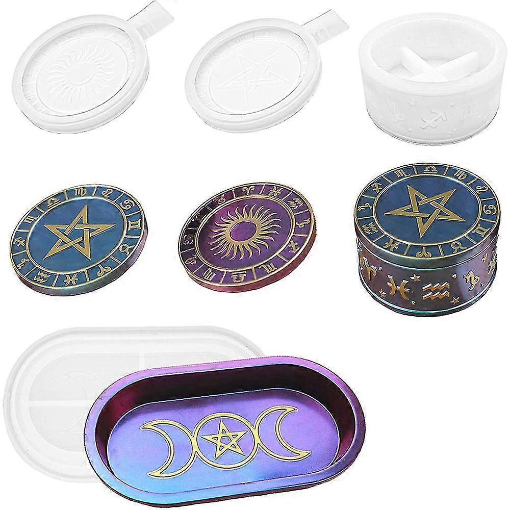 Resin Storage Box Mold with 2 Different Pattern Lids Triple Moon Goddess Tray Silicone Mold for Jew