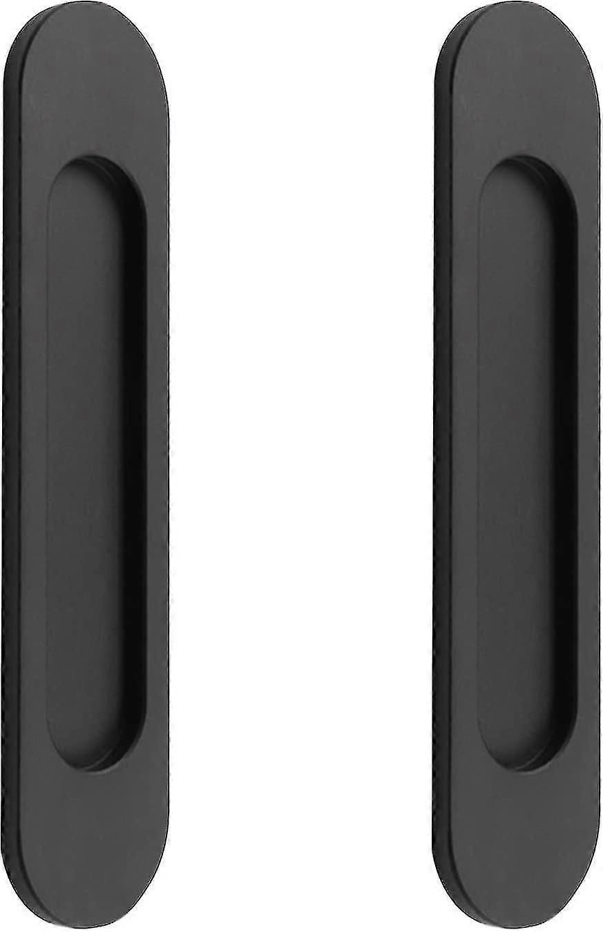 Set Of 2 Self Adhesive Matte Black Aluminum Alloy Oval Sliding Door Handles No Punching For Sliding Barn Doors, Windows, Cabinets