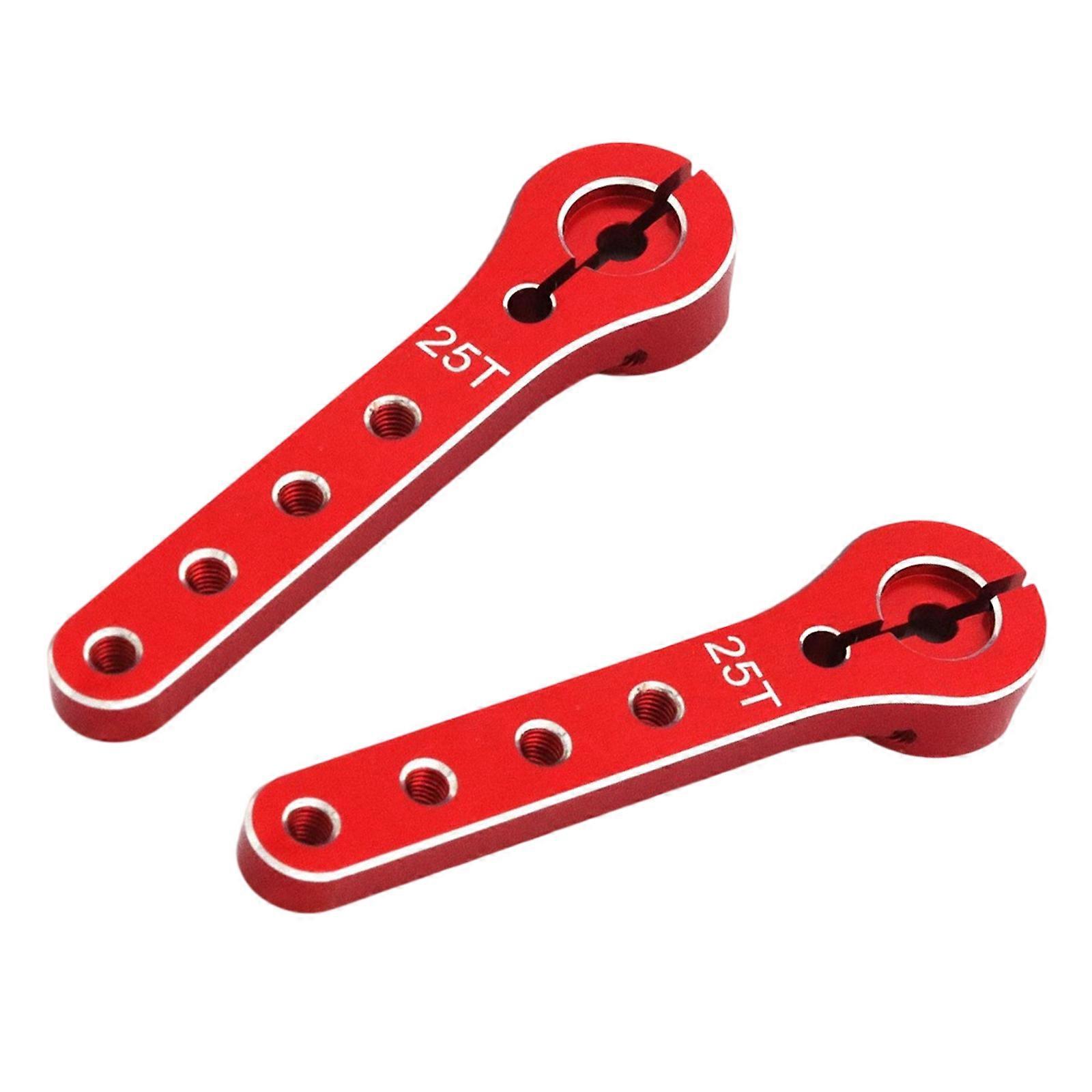 Pack of 2 Metal Servo Horns Precisions Machined 25T Metal Servo Arm Remote Control Helicopter Parts for Crawlers Red