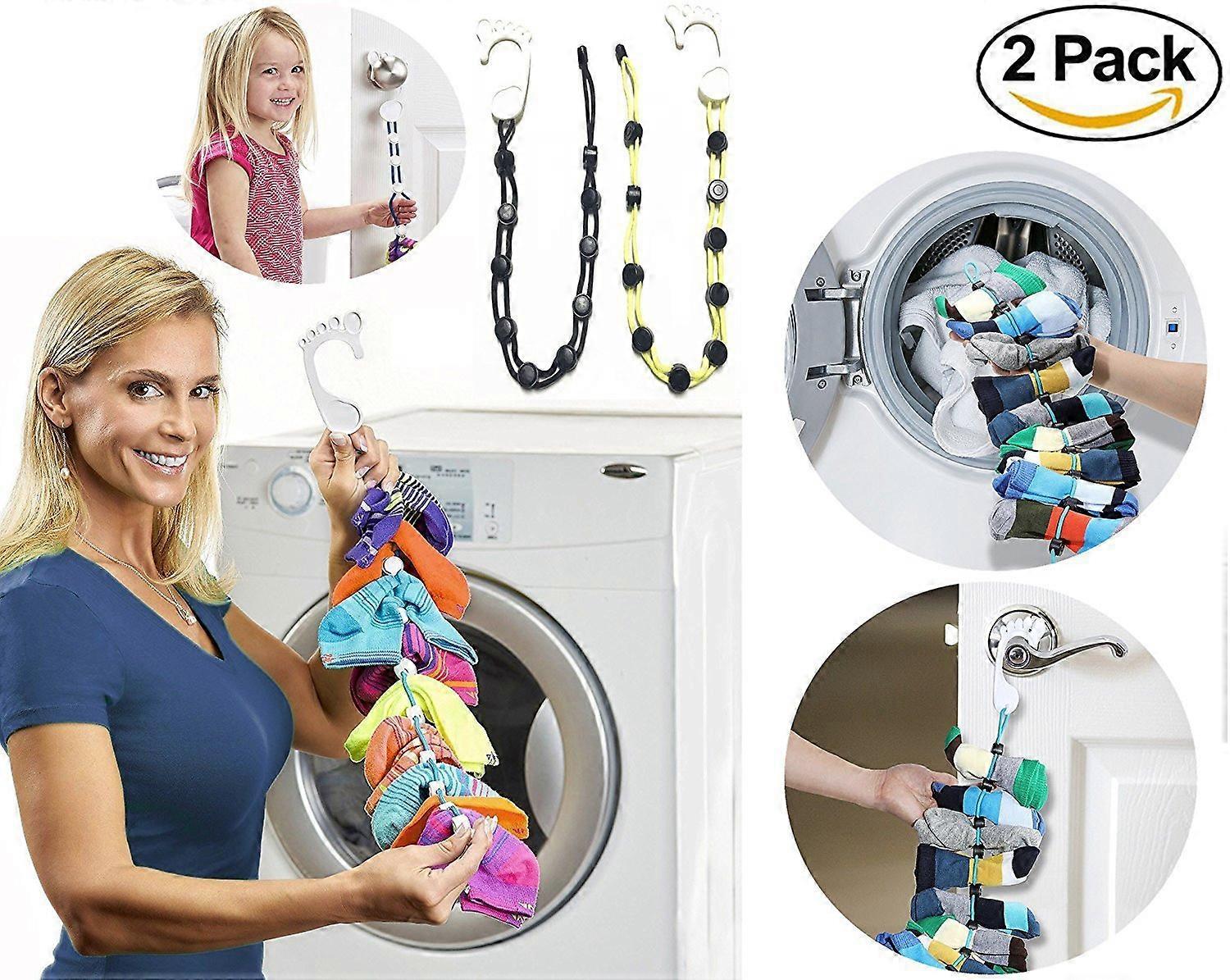 Set of 2 Sock Wash Organizers (Black + Yellow) Easy Clip and Lock Laundry Room Divider Keeper