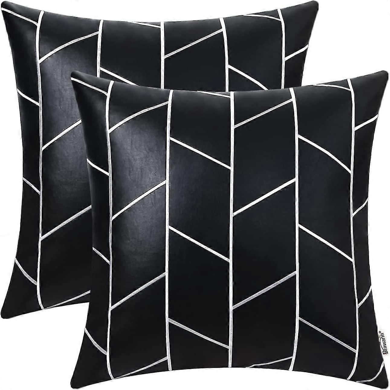 Pack Of 2 Black And White Leather Throw Pillows 18 X 18 Inches. White Black