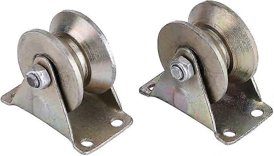 2 Pcs 2 Inch Steel Sliding Gate Roller V Shaped Wheel Track Rail Sliding Door Roller With Bracket