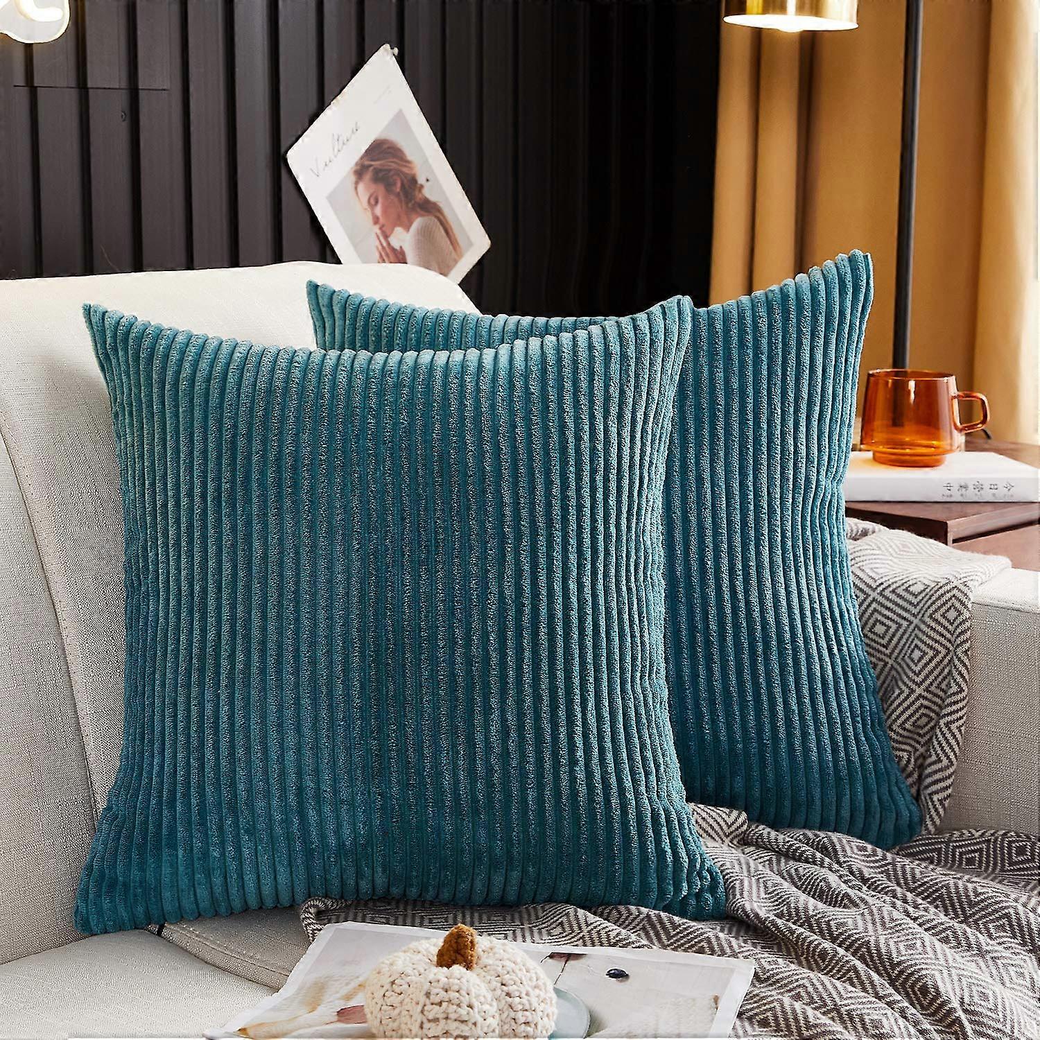 Pack of 2,White Corduroy Soft Decorative Square Throw Pillow Cover Home Decorations For Sofa Couch Bed Chair 45x45 cm
