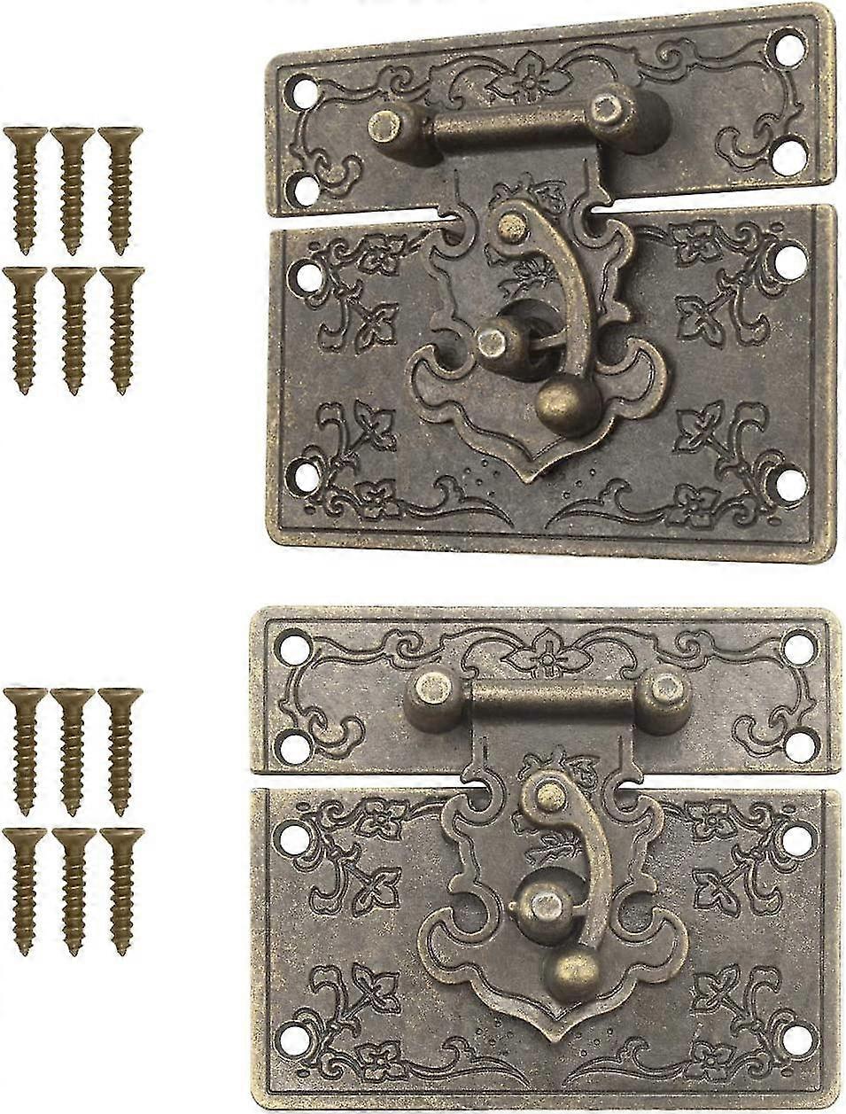 Set of 2 Antique Buckle, Latch, Bronze Iron Lock, Sliding Cabinet Fitting, 67x58mm w/Screw, Set of 2 (Antique Bronze)