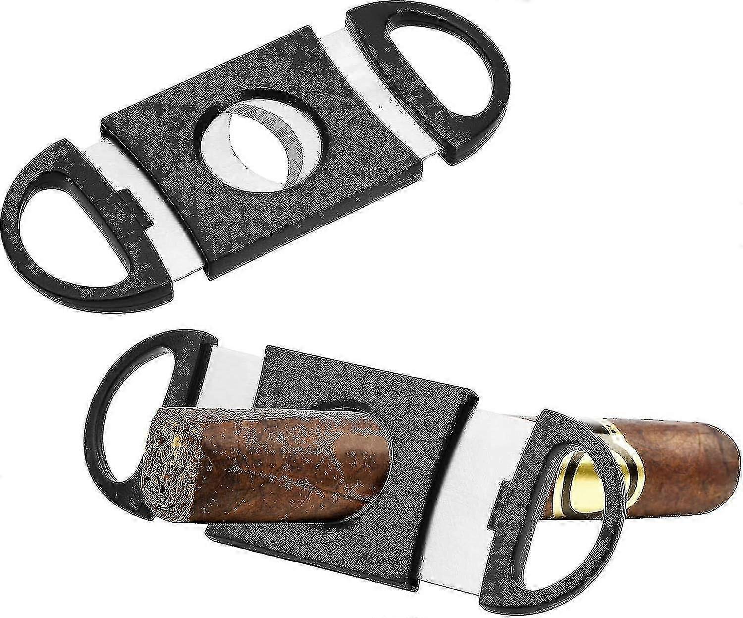 2 Cigar Cutters (black), Double Guillotine Cutter, Cigar Scissors With Plastic Handles, Stainless Steel Cigar Tools, Cigar Accessories To Fit Most Siz