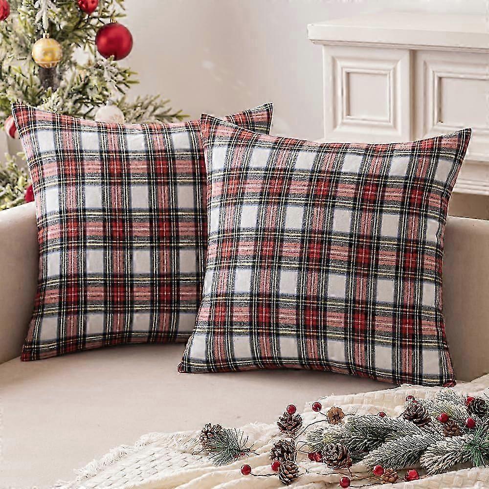 Christmas Set of 2 Scottish Tartan Plaid Throw Pillow Covers Farmhouse Classic Decorative Square Cushion Cases 18x18 Inch,white red
