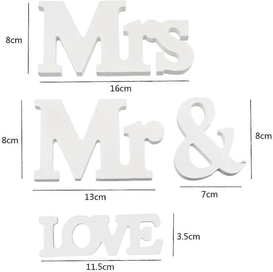 2 Sets Wedding Table Signs: White Wooden Mr and Mrs Love Letters Sings Decorations - Wedding Reception Centerpiece Props