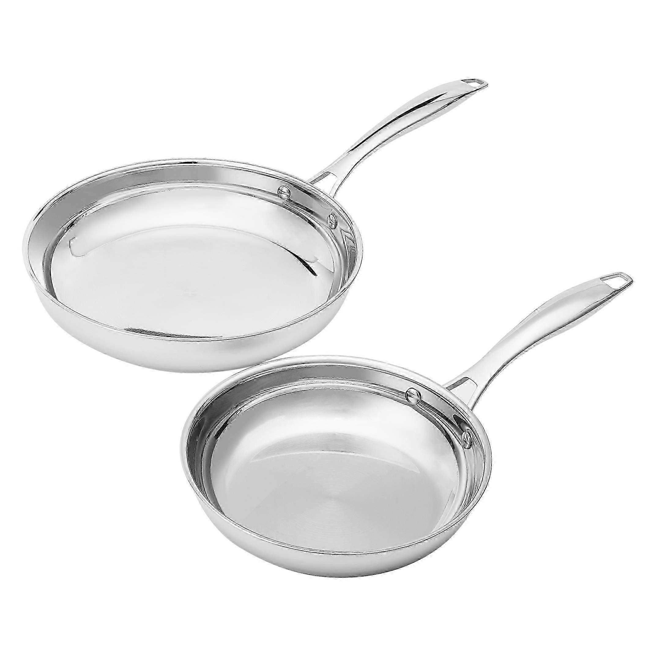 2 Sets Stainless Steel Frying Pans 8-inch & 10-inch for Cooking & Baking