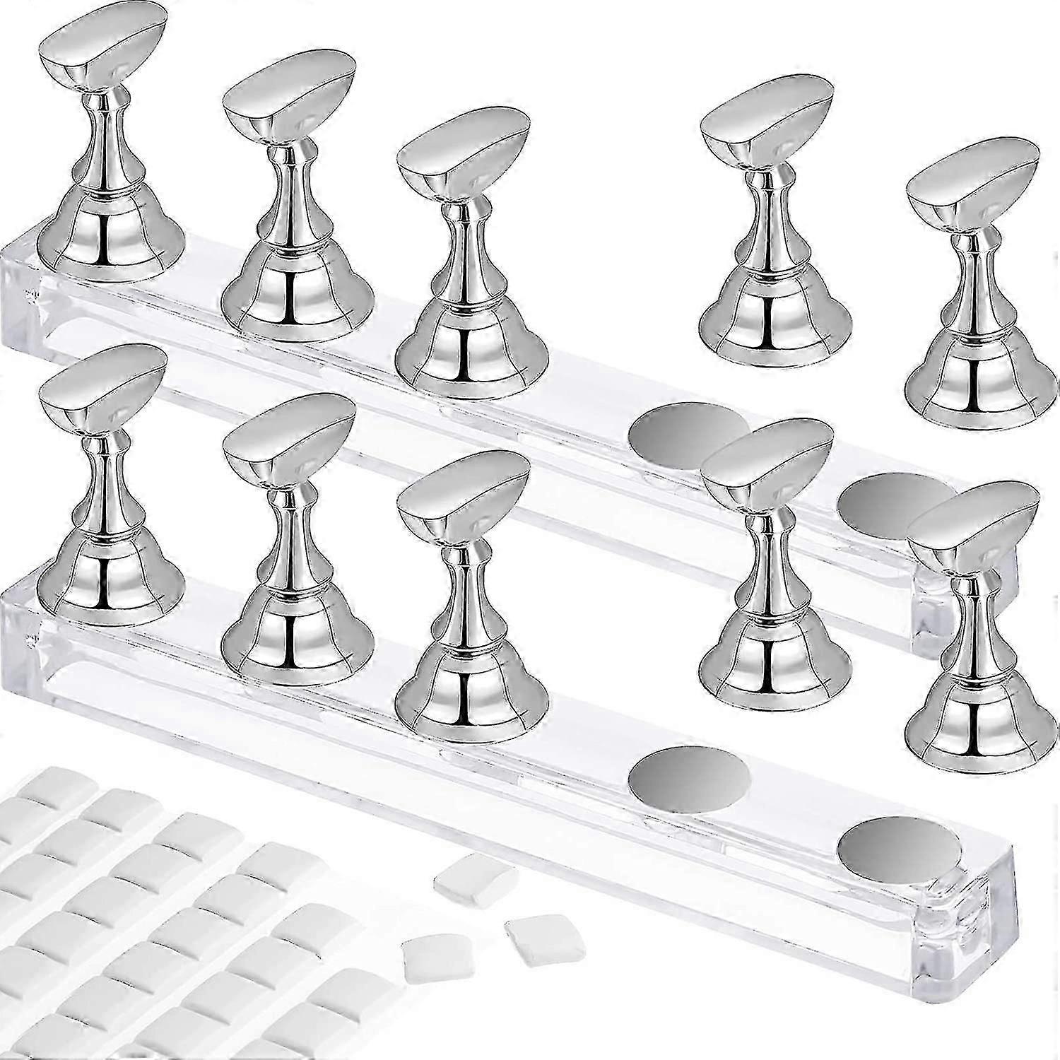 2 Set Acrylic Nail Art Practice Stands Magnetic Nail Tips Holders Training Fingernail Display Stands Diy Nail Crystal Holders