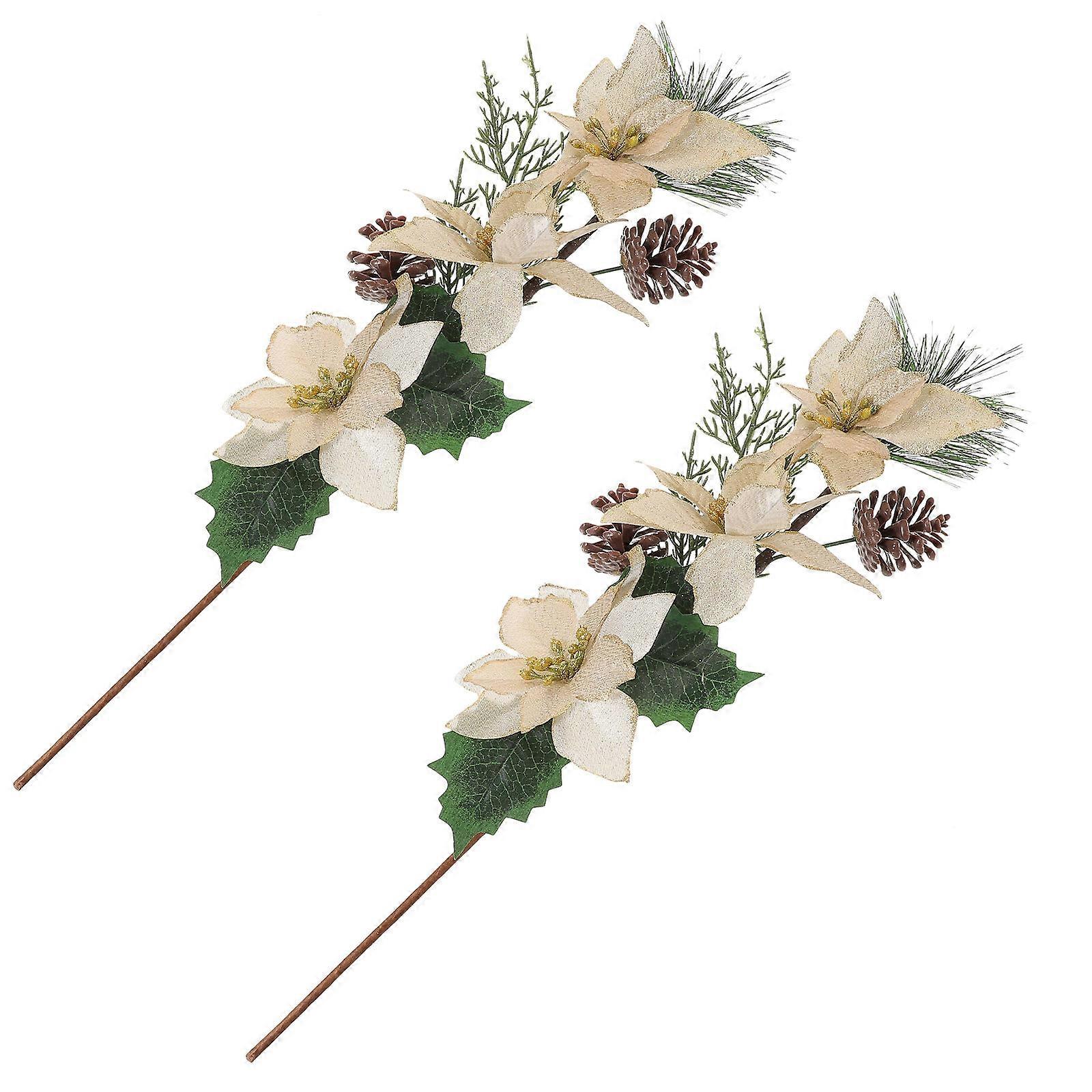 2Set Christmas Flower Stems Festive Ornament Picks For Holiday Decorations And DIY Wreath 48X12CM Lifelike Design
