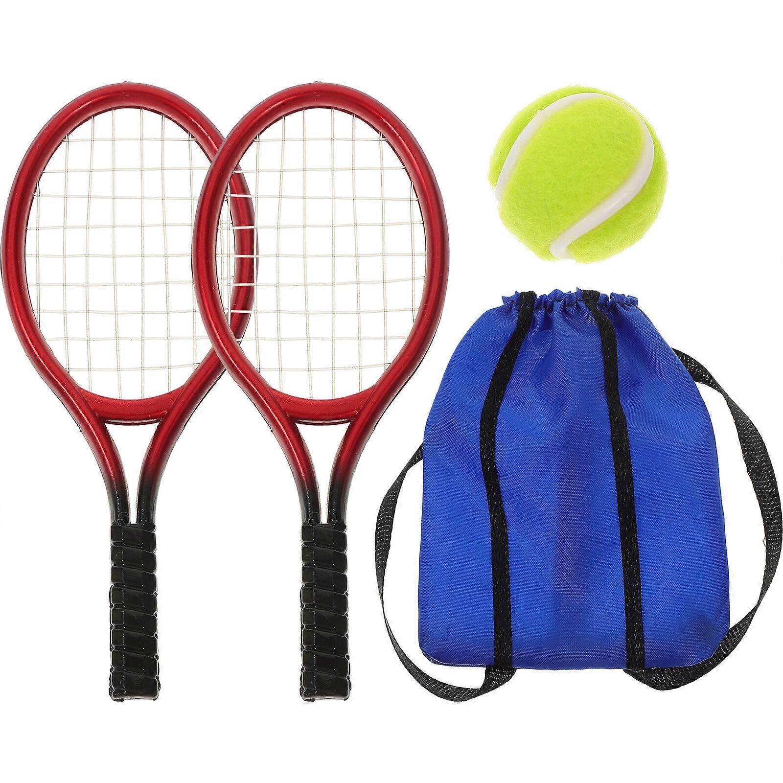 2 Sets Dollhouse Sports Accessories Miniature Dollhouse Sports Tennis Racket and Ball Bag Set