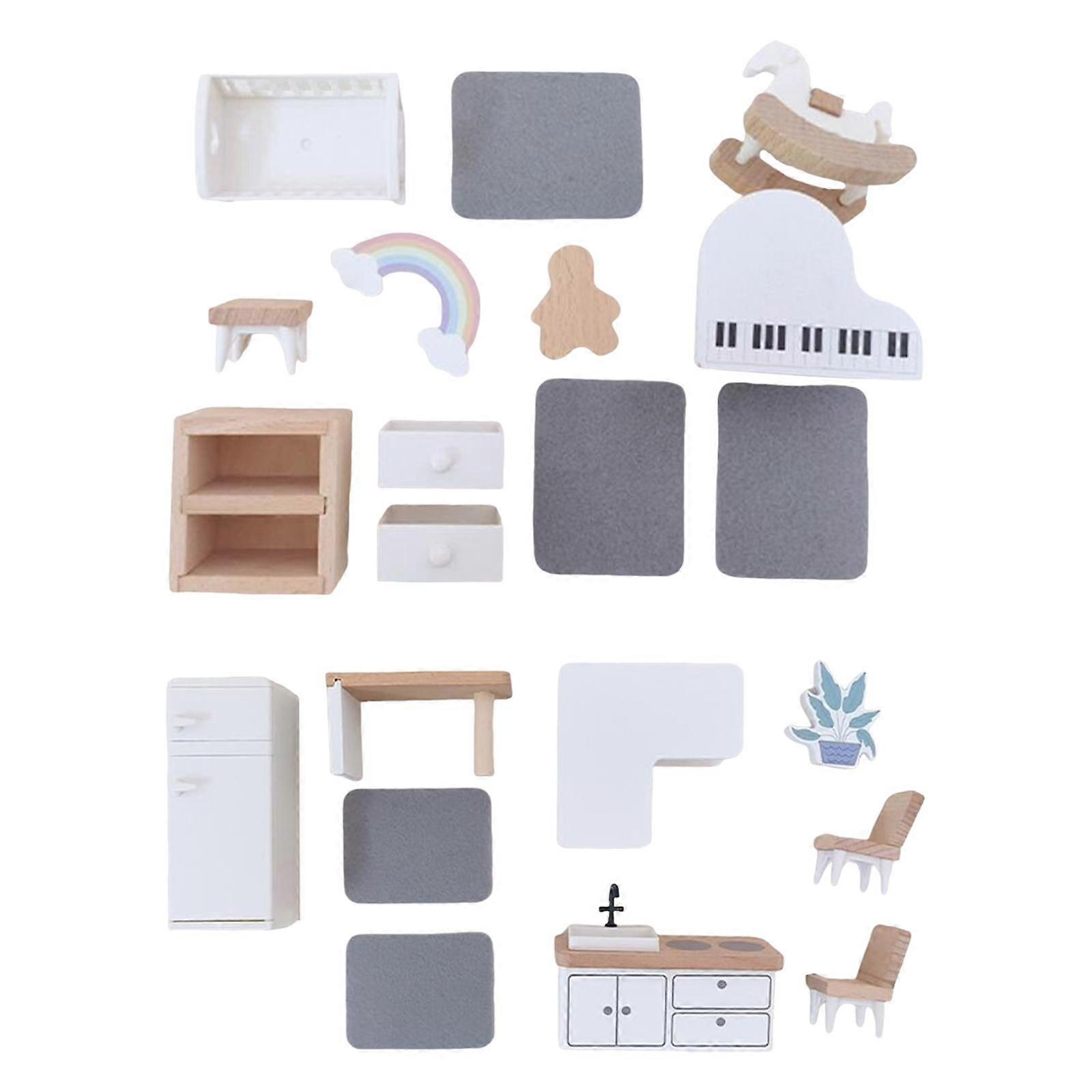 2 Sets Doll House Furniture Model Retro Style Scene Layout Family for Home