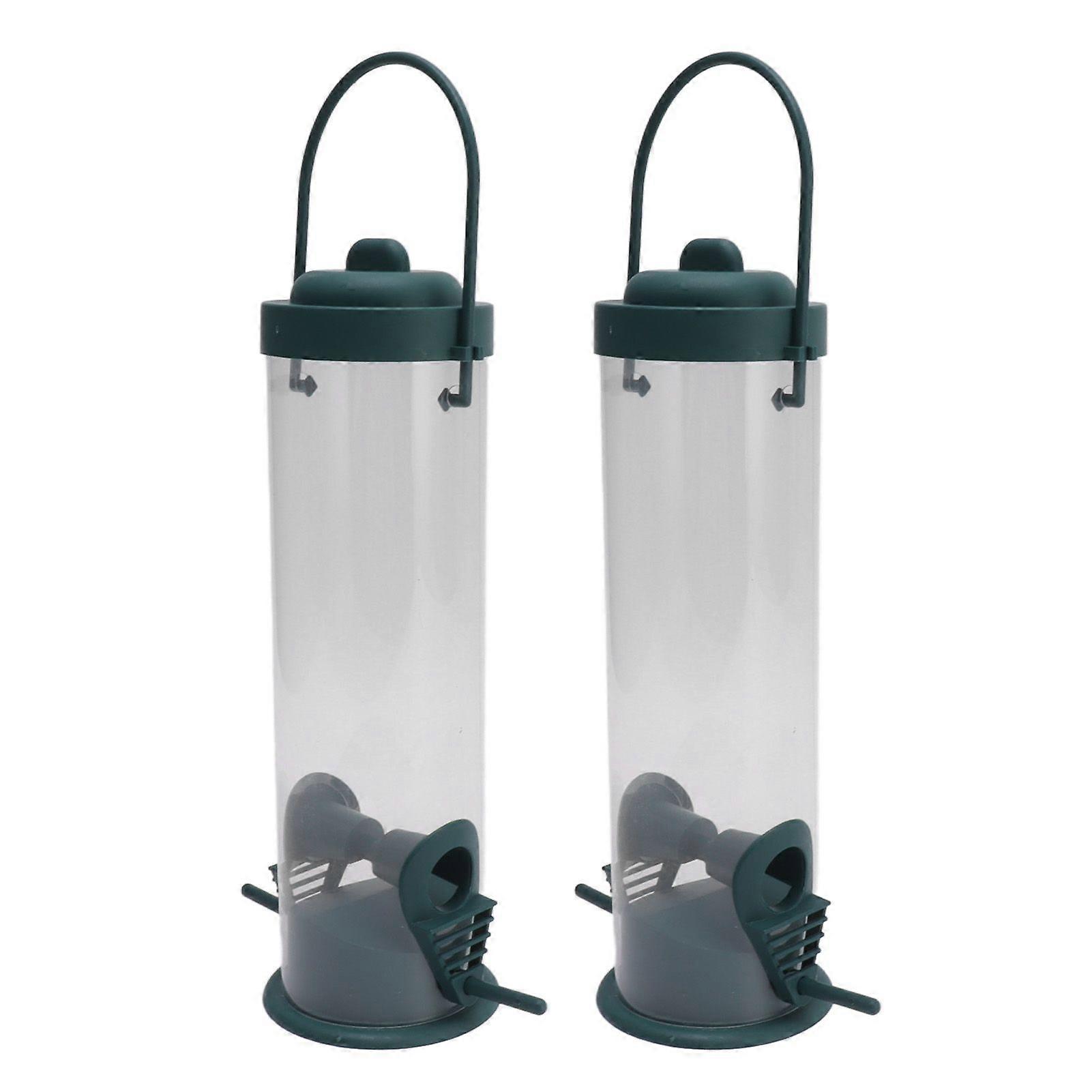 2 Set Bird Tube Feeder Plastic Transparent Hanging Finch Feeder Garden Decoration with 2 Vents 2 Ports