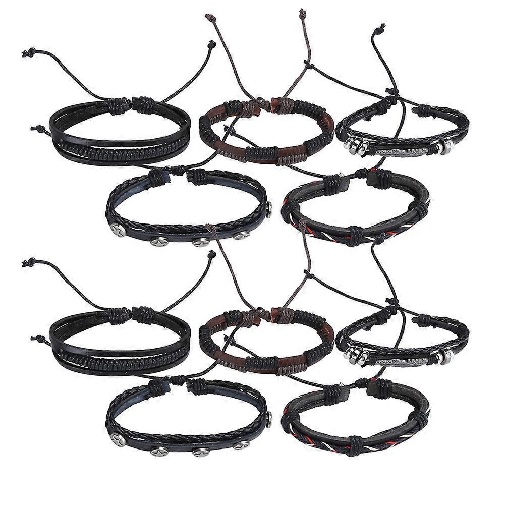 Features: 1.Using high?quality materials, strong and durable, has a long service life. 2.This bracelet is suitable for everyone and various situations, beautiful and practical. 3.Good‑looking and generous to wear, providing you with a different look. 4.The rope is adjustable in size and can be adjusted according to your preferences. 5.Small size, easy to carry and store, convenient to use and with good performance. specification:Item Type: Faux Leather Bracelet Rope Material: Faux Leather + metal Function: Cowhide faux leather bracelet, DIY hand-woven bracelet, European and American student beaded bracelet Size: Minimum Diameter: Approx. 8cm / 3.1in Woven Bracelet Tile Length: Approx. 17 ~ 18cm / 6.7 ~ 7.1in Drawstring Length: Approx. 8 ~ 9cm / 3.1 ~ 3.5in (can be drawn and adjusted at the same time) PackageList:2 SetFauxLeather Bracelet Rope(10Pcs) NoteDue to the irregular shape, the rope is drawable, the size is for reference only