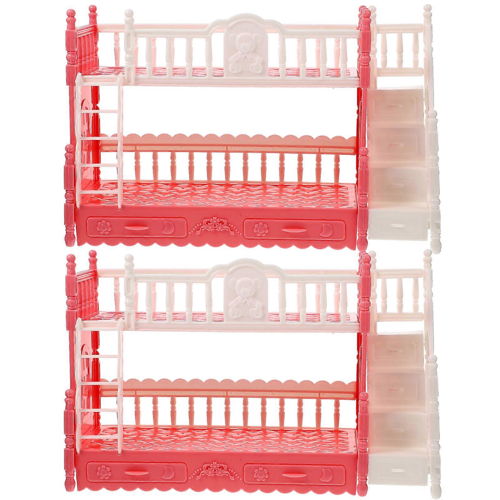2 Sets Mini Double-decker Bed Model Mini House Furniture Mini Furniture Doll House Supplies