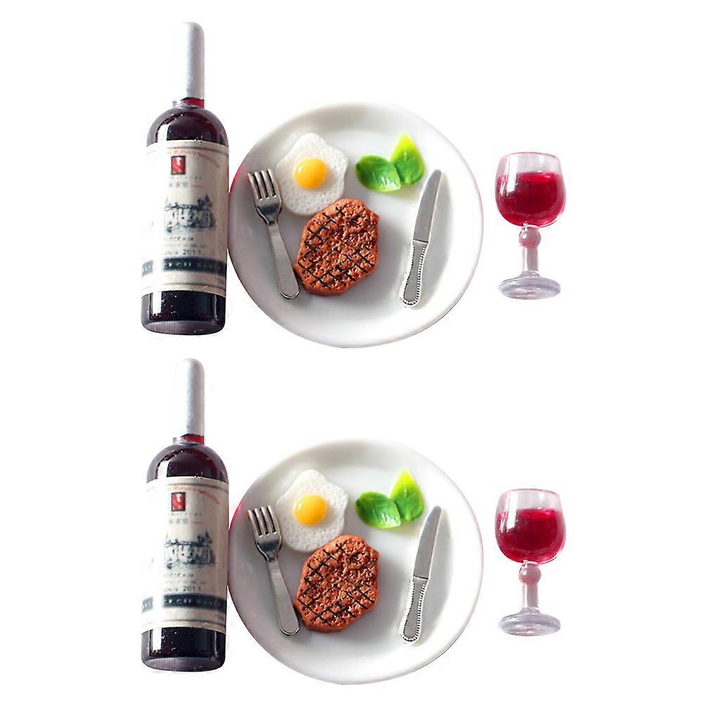 2 Sets Miniforce Toys Miniature Steak Dish Mini House Food Drinking Mug Models Dolls House Accessories Mini Food Model
