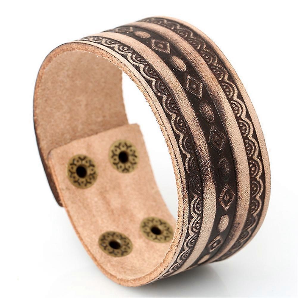 2set Retro Style Unisex Handmade Cowhide Mark Pattern Wrist Band Bracelet Jewelry Accessory