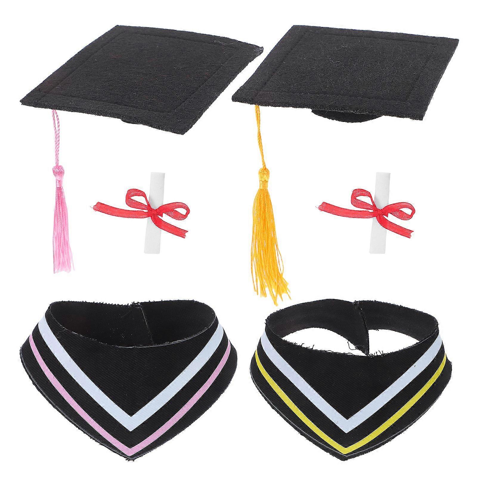2 Sets Graduation Bear Doll Costume With Collar And Cap Plush Stuffed Animals Outfit For Graduation Party Decoration Replaceable Clothes Accessories F