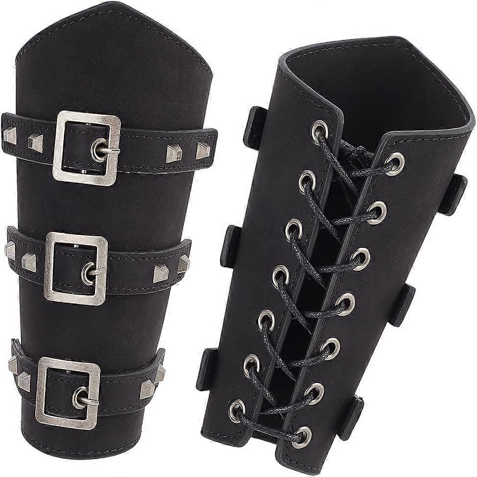 2 Set Adults Faux Leather Arm Guards 7.7x9.4x0.59" Medieval Leather Buckle Bracers Wrist Band Buckle Wide Bracer for Halloween Decor Punk Cosplay Cost