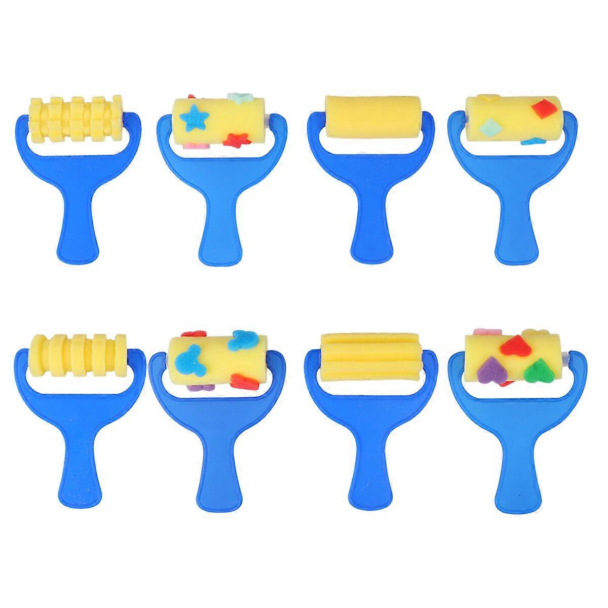 2 Set Drawing Sponge Brush Funny Graffiti DIY Tool Sponge Brush for Kids Children Girls (4pcs Roller Brush and 4pcs Random Pattern Printing Roller Bru