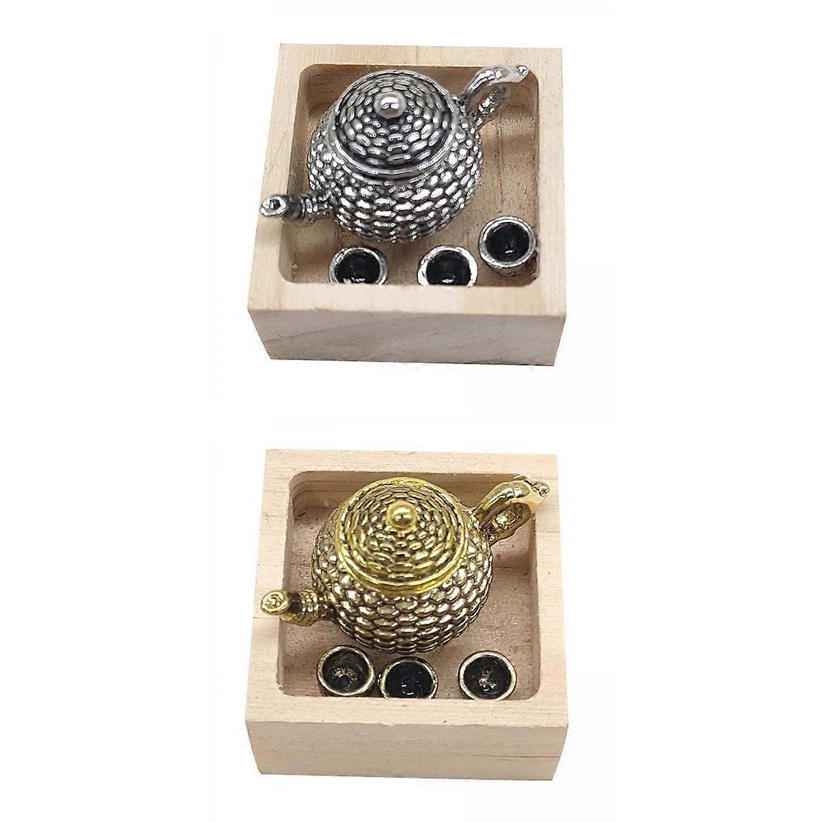 2 Sets 1/12 Scale Dollhouse Mini Tea Set for Dolls House Decoration Accessories