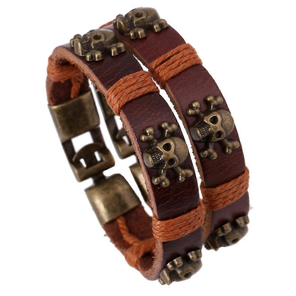 2set 2pcs Unisex Punk Woven Leather Bracelet Men Women Couple Handmade Buckle Bangle