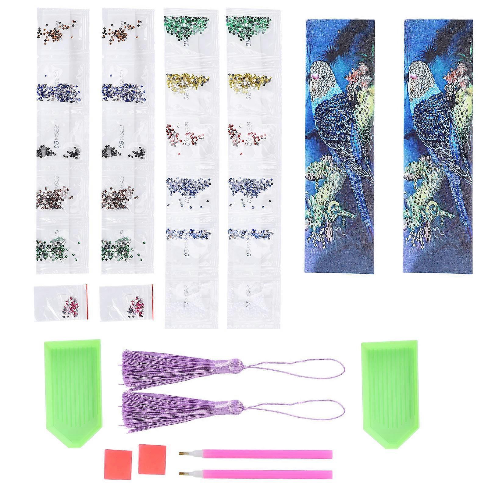 2 Set AA253 Diamond Bookmarks 20.5x5.5cm Round Parrot Pattern