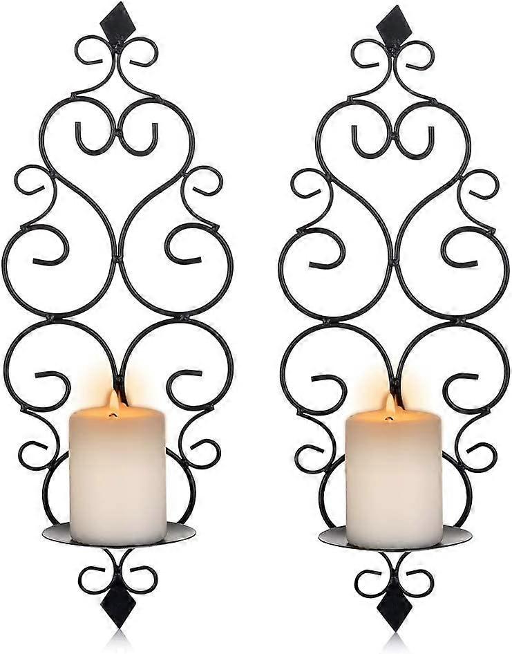 Set of 2 Tealight Holders Candle Holder Wall Mounted Metal Candle Holders, Candle Holder for Wall Bedroom Bathroom Living Room Decoration, Black
