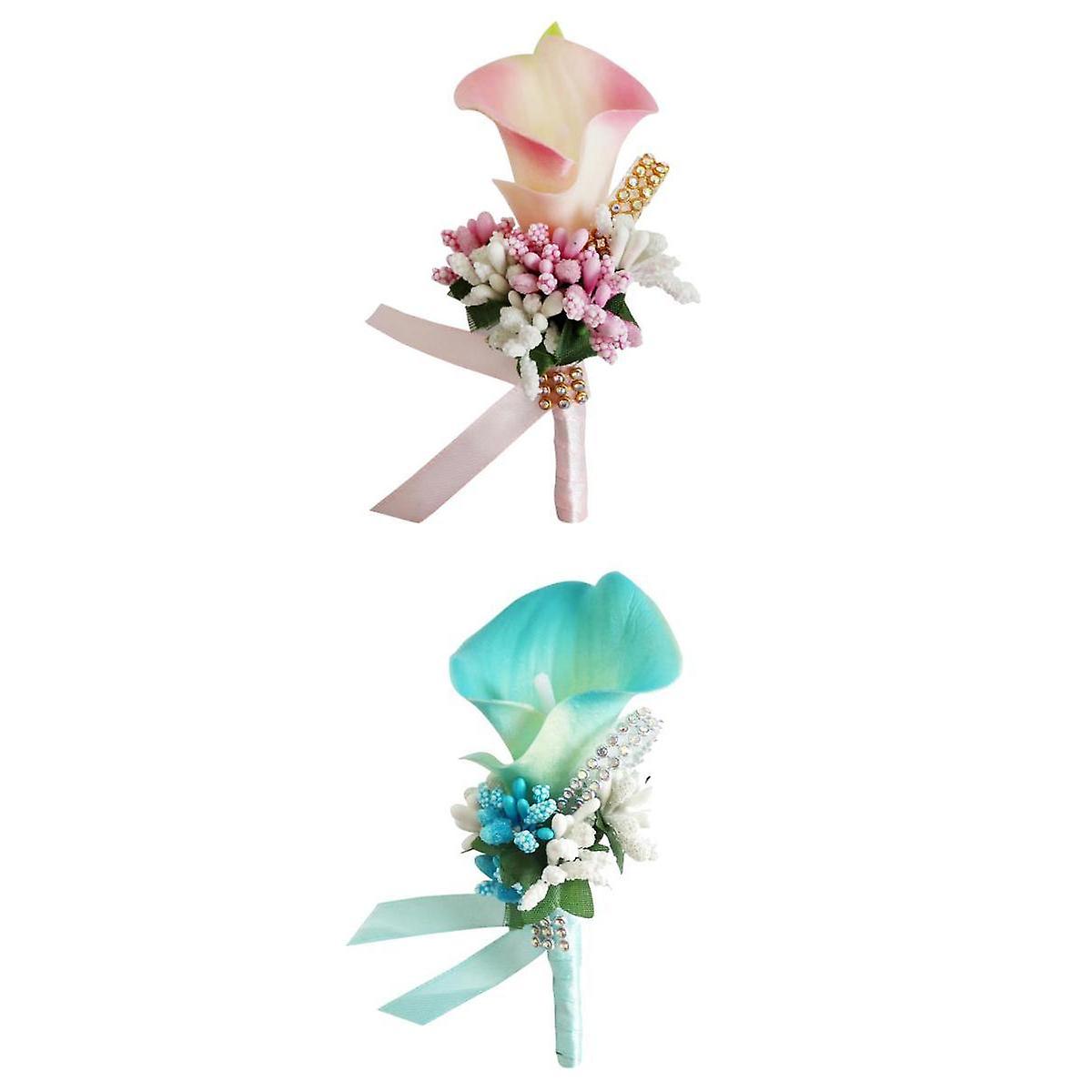 2 Pack Cute Calla Berry Rhinestone Groom Bridal Wedding Corsage 2 Colors