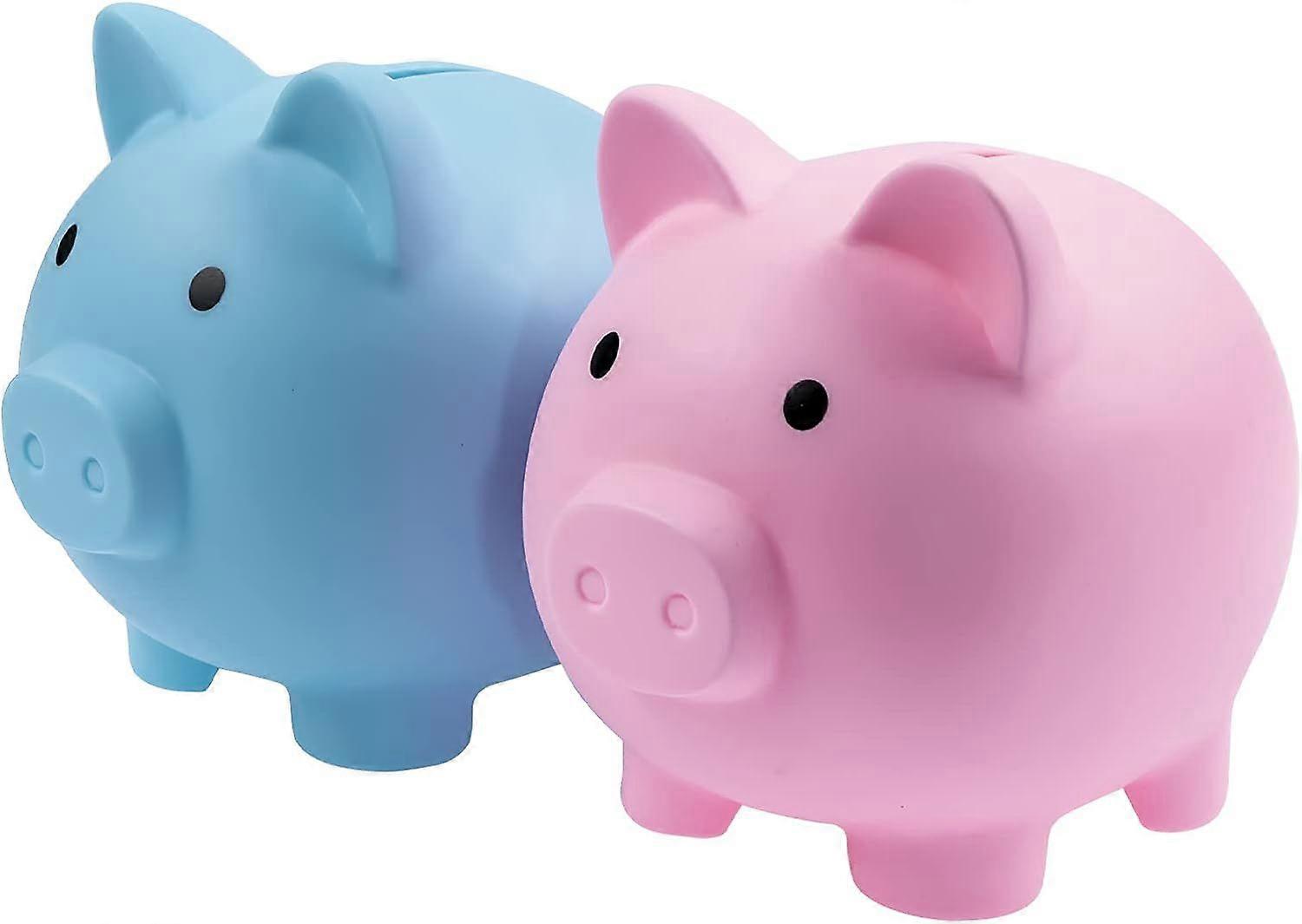 2 Pack Unbreakable Plastic Pig Piggy Banks with Rotating Lid Bottom, Cute Coin Box, Great Gift Idea for Birthday, Christmas, Baby Shower (Blue+Pink, 1