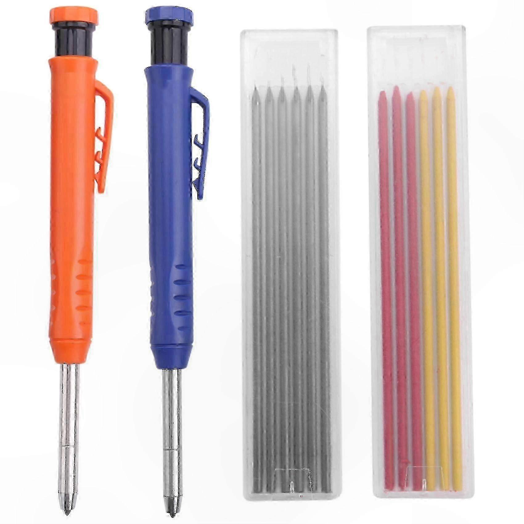 2 Pack Carpenter Pencils with 14 Refills, Long Nose Sharpener for Woodworking Projects