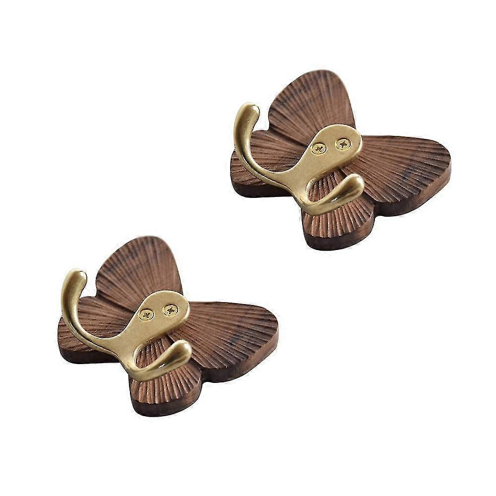 2 Pack Durable Wooden Coat Hooks and Home Hangers in Black Walnut Wall Mounting Hook Holders