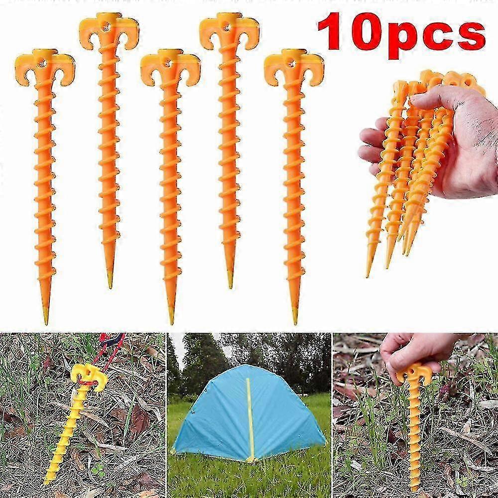 Features: High strength, ultra-light, no rust, no bending.If it rains, you can dig a drain. New nylon material, suitable for beaches, mud, grass, etc. Application: outdoor hiking, adventure, jungle crossing, picnic, camping, etc. 10Pcs Strong Screw Spiral Tent Peg Stakes Nail Outdoor Camping Awning Pins. Please build a tent on a flat terrain.Clear the sharp objects on the ground. Build the tent normally, properly use ground nails and windproof ropes to stabilize the tents. When using the tent, pay attention to avoid chemicals and keep away from the fire source. Pay attention to dust and moisture after the tent is stored, and avoid direct sunlight. Specifications: Material: High quality PP plastic Color: Yellow Size: 20x4.5cm Package Includes: 10x Tent Pegs