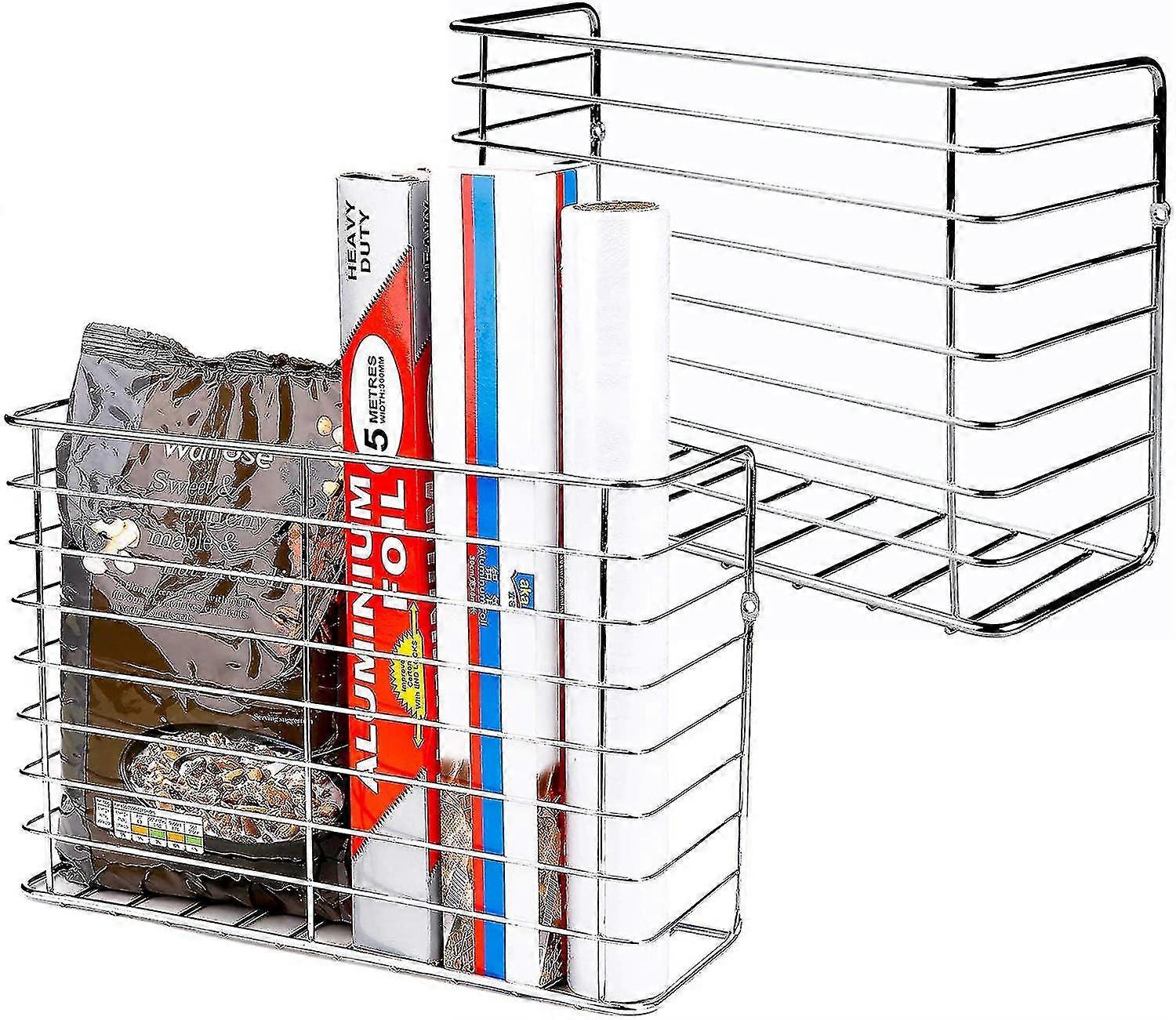 2 Pack Wall Door Mount Kitchen Wrap Organizer Rack,cabinet Door/pantry Door/wall Mount Kitchen Storage Organizer Basket Versatile The Metal Storage Ba