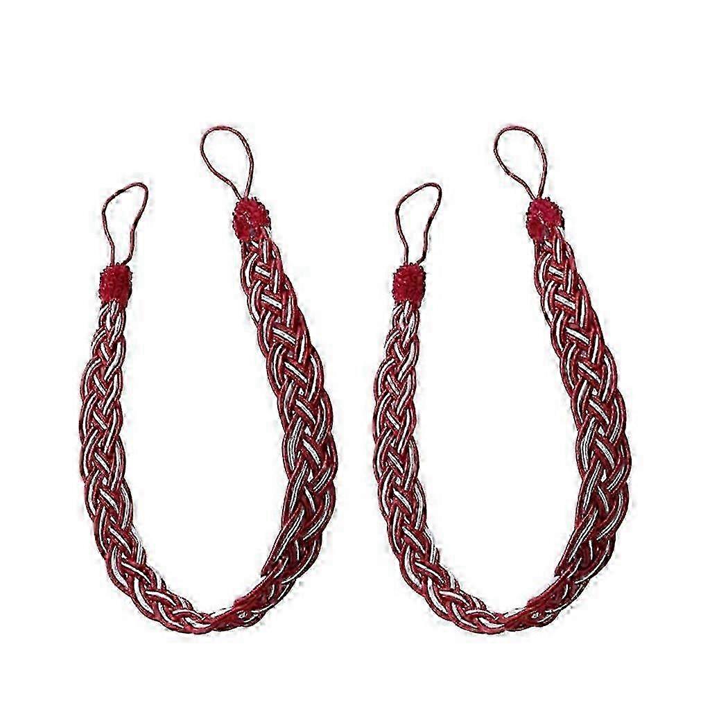 2 Pack Curtain Ties Hand Woven Curtain Tethers for Home Curtains (Wine red)