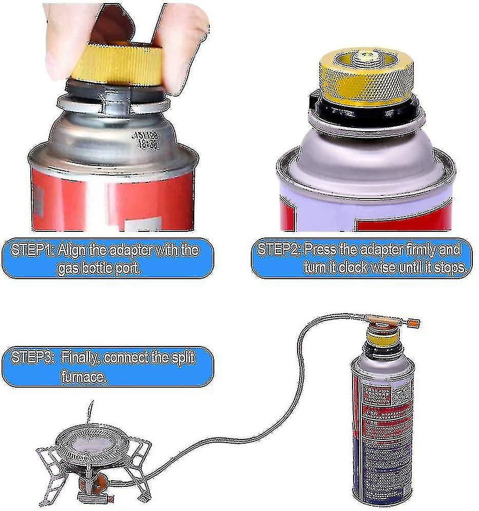 Fits ly - Fits tight to the butane cylinder once you turn the knob and easy to screw into the stove. make certain you have the adapter in the loose position and determine how it tightens before placing it on the fuel cylinder. ner for Outdoor Activities - These Camping Gas Adapters are lightweight and portable. accessory for outdoor activities like camping, picnic and BBQ. Suitable for split type furnace.Auto-Off Functional - With the automatic off function. It won't leak even the stove is not connected when connected to the long tank gas cylinder.Size of the Adpter - The outer diameter of the Camping Gas Adapter is approx. 4cm. The inner diameter of the Camping Gas Adapter is approx. 1.1cm (The hole to connect the tube). Material - of quality aluminum and copper with high temperature resistant performance. 2 Pack for your convenience. :Material: & : enDimenssion:Outer Diameter: 4cmInner Diameter: 1.1cm (The hole to connect the tube)Feature:1. and easy to carry.2. accessory for camping, picnic and barbecue.3.Auto-Off function.4.Suitable for split type furnace.5.No leakage.Package Includes:2 x Canister Adapter ( )