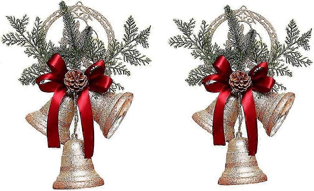 Package Includes: 2 sparkling bells. Measures approximately: 13.8 x 8.3 inches/35 x 21 cm.High-Quality Material: Made of environmentally friendly PVC material, sturdy and durable, exquisite in appearance, not easy to deform or break, and has a smooth polished surface. Hang it on the wall of your home's main gathering space to spread holiday cheer throughout the room.Christmas elements: sparkling Christmas bells, paired with Christmas pine needles, pine cones and bows, full of Christmas spirit.Easy to use: Christmas bells are lightweight and convenient. Just hang them on your Christmas tree or anywhere else you want to decorate. These jingle bell ornaments will bring a rustic touch to your holiday decor.Wide range of uses: Suitable for decorating Christmas trees, restaurants, homes, hotels, offices, gardens, clubs, etc. during Christmas. A great addition to your Christmas decorations and holiday decorations. It is also the best Christmas gift for relatives and friends.