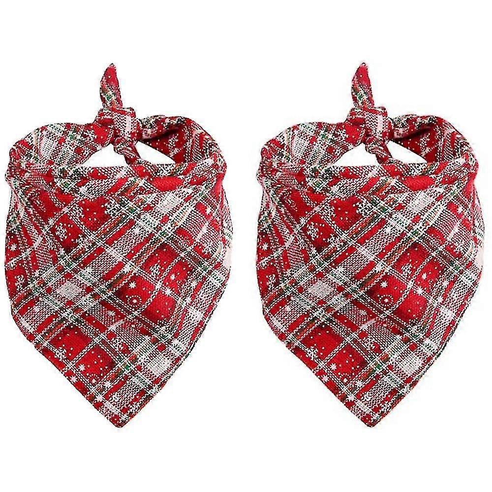 2 Pack Christmas Dog Bandana, Holiday Cat Bandana Buffalo Plaid Flannel Bibs Scarfs For Dogs Cats