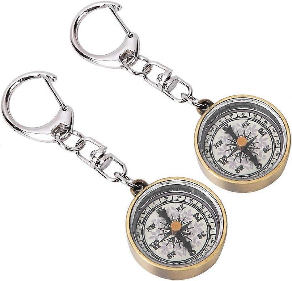 2 Pack Compass Keychain, Vintage Outdoor Camping Hiking Navigation Tool Zinc Alloy Pocket Compass